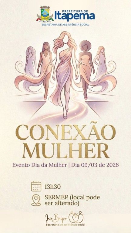 A Secretaria de Assistência Social de Itapema promove nesta segunda-feira (09), a partir das 13h30, o evento Conexão Mulher, no SERMEP, localizado na Rua 406H, nº 1650, no bairro Sertão do Trombudo. A programação integra as ações em alusão ao Dia Internacional da Mulher e busca proporcionar um momento de encontro, valorização e fortalecimento das mulheres do município, reunindo atividades de integração, cuidado com a saúde e troca de experiências.