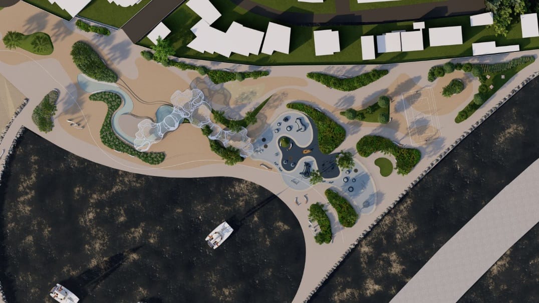 A ideia engloba playground, espaço pet, quiosques, quadras de areia e locais para esportes náuticos.