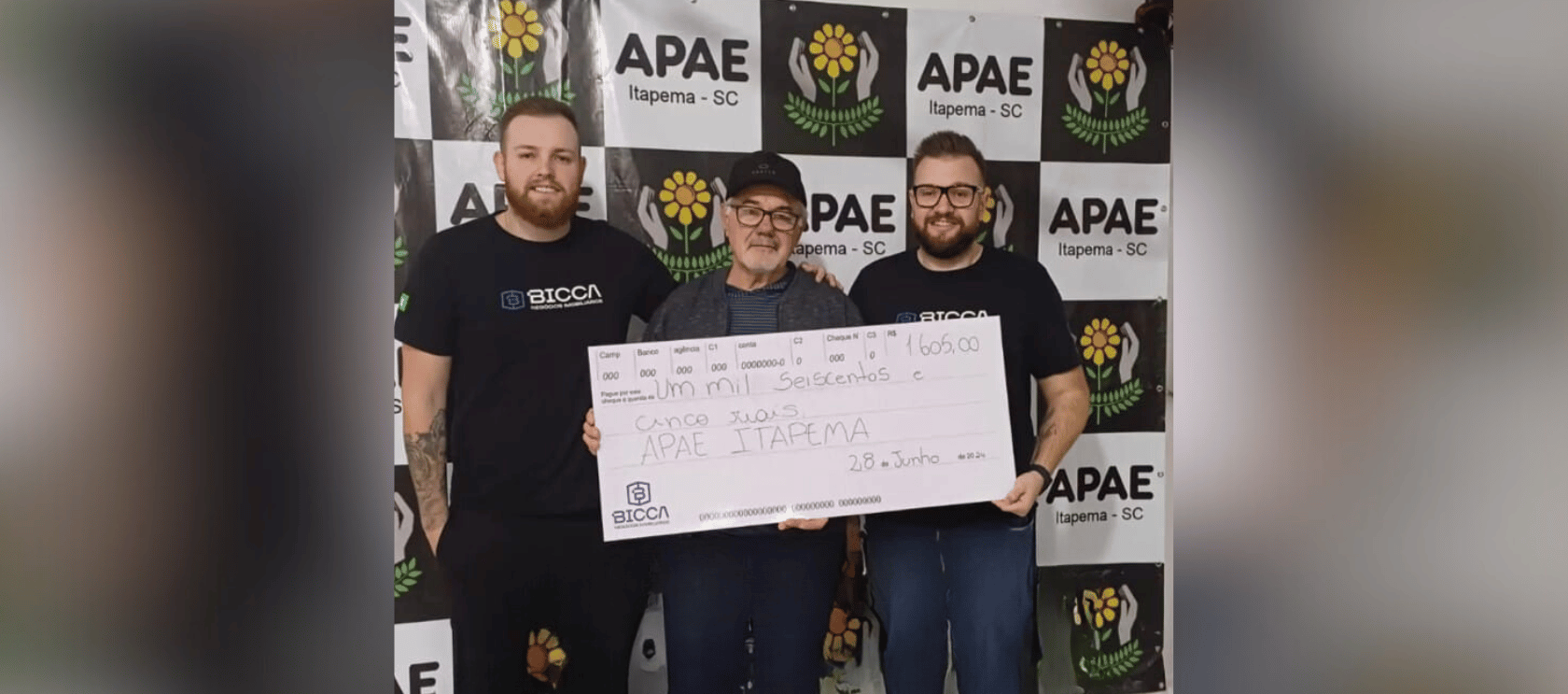 A Bicca Negócios Imobiliários realizou uma doação de R$ 1.605 à APAE de Itapema, valor arrecadado durante a festa junina Arraiá do Temple. O evento, que comemorou o segundo aniversário da imobiliária, ocorreu no dia 20 de junho em parceria com o Villa Temple.